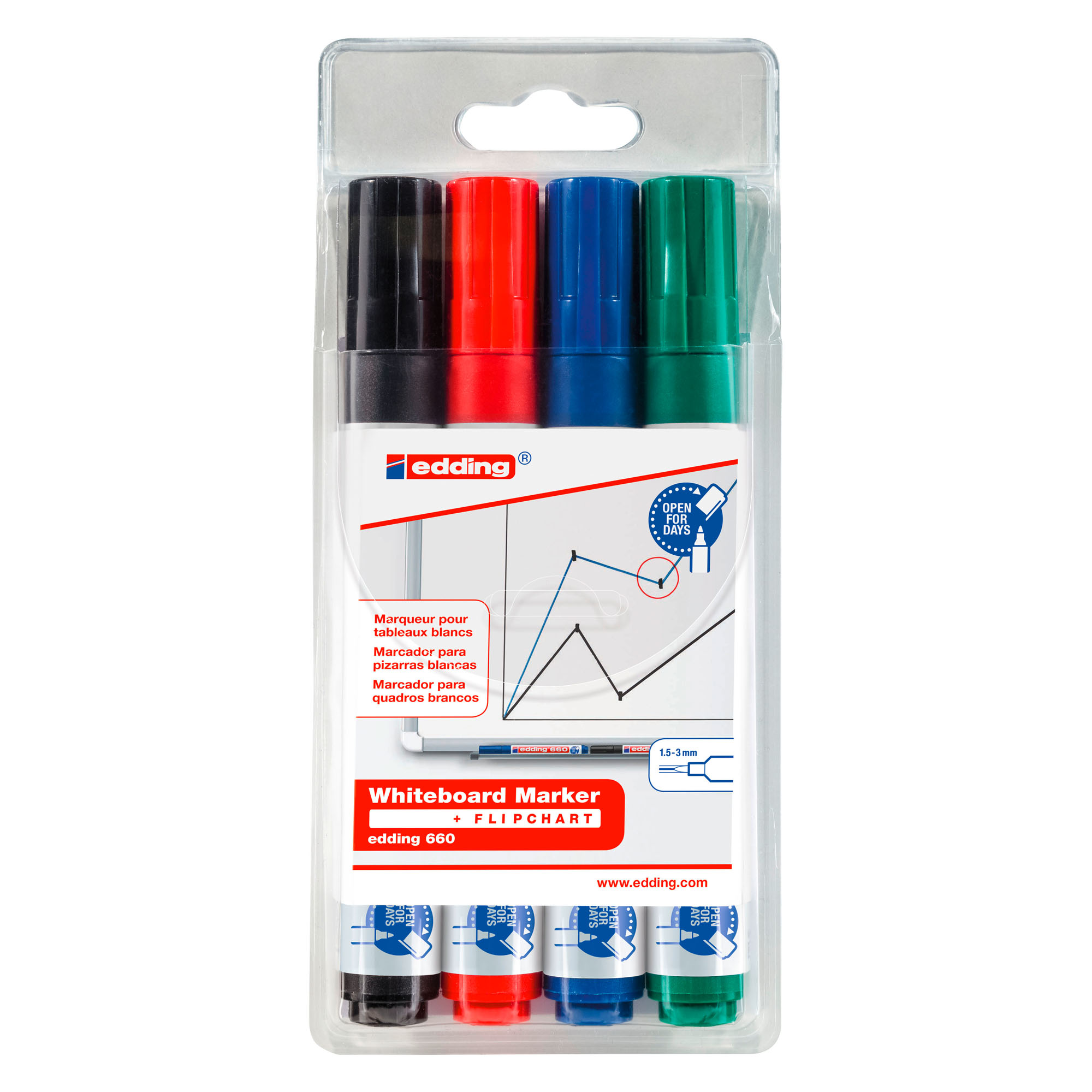 edding Whiteboard marker 660 Bullet tip Black / Blue / Red / Green Pack 4