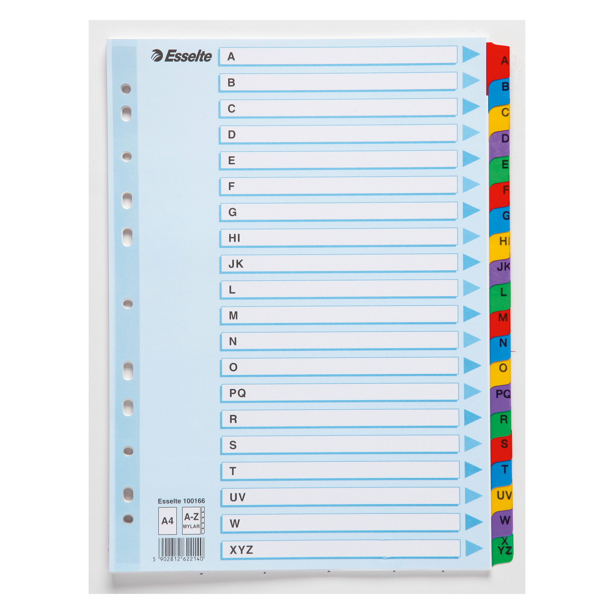 Other popular products in this sectionEsselte Mylar Indices 100162 A4 With Reinforced Tabs Multicolour 12 Part Perforated 160 gsm Cardboard 1 to 12€6.59 ex VAT€4.99 ex VATPromo -24%Esselte Mylar Indices 100166 A4 With Reinforced Tabs Multicolour 20 Part Perforated 160 gsm Cardboard A to Z€10.09 ex VAT€6.99 ex VATPromo -30%