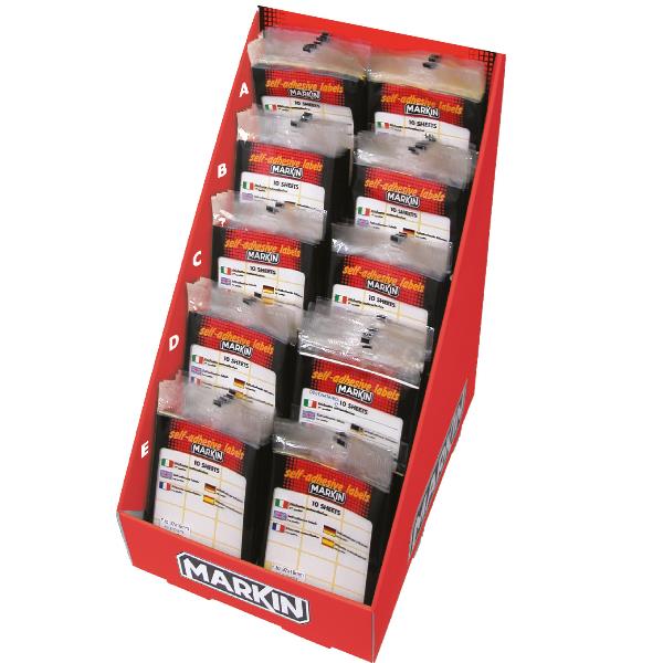 Detailled descriptionETICHETTE AUTOADESIVE BIANCHEEtichette autoadesive bianche, in busta da 10 fogli e inespositore da 250 bustine (25 bustine x 10 misure)