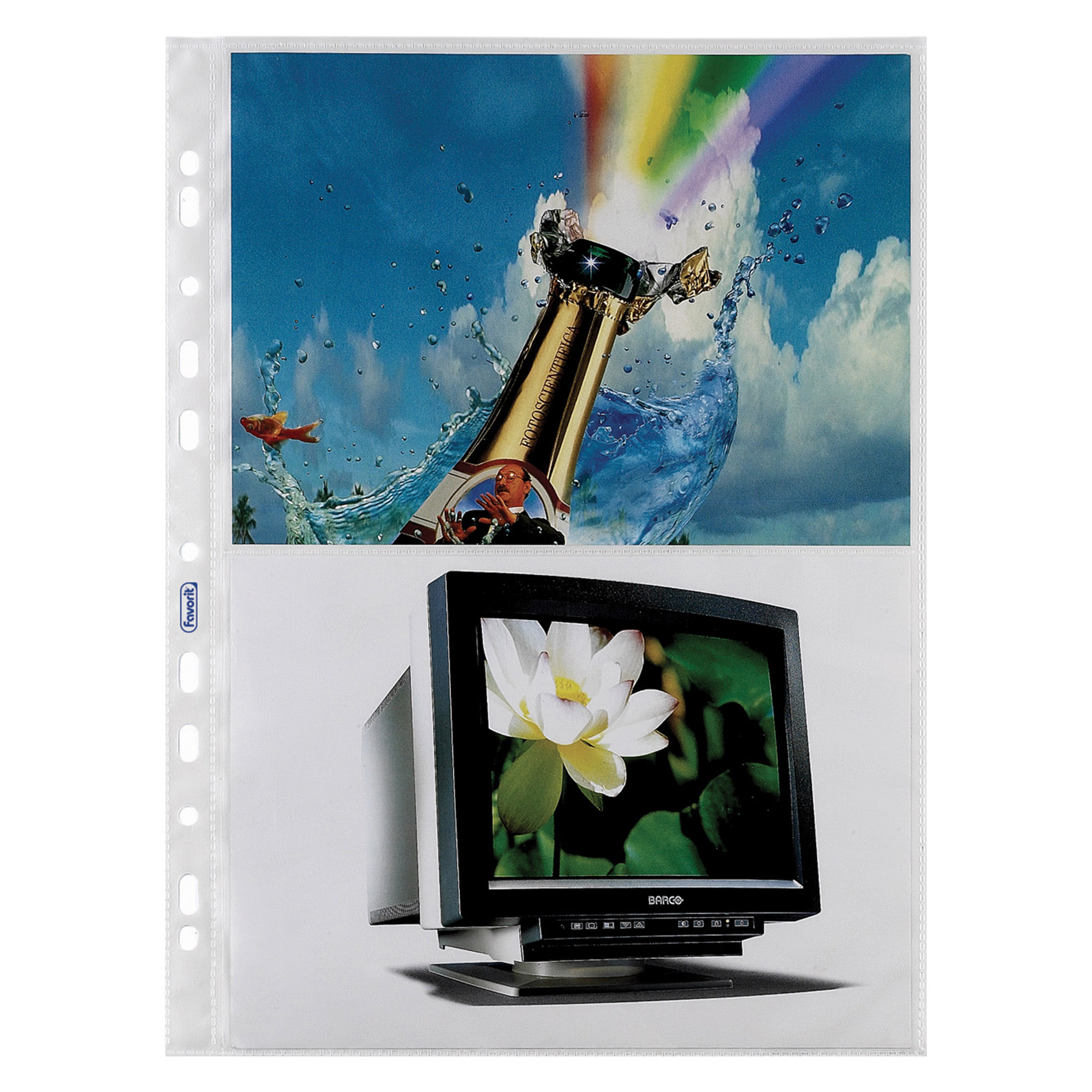 Buste con banda laterale a perforazione universale realizzate in NATURENE (polipropilene) goffrato.