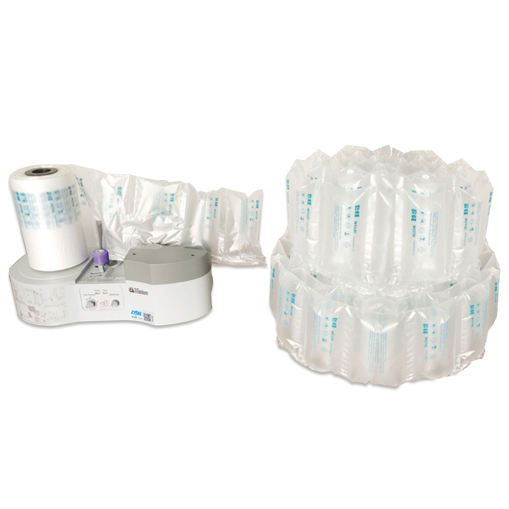Cuscini d'aria in materiale HDPE 100% riciclabili. Utilizzabili per occupare gli spazi vuoti all'interno dell'imballo, avvolgere e proteggere i prodotti, limitare spostamenti e rottura dei contenuti presenti all'interno della scatola.