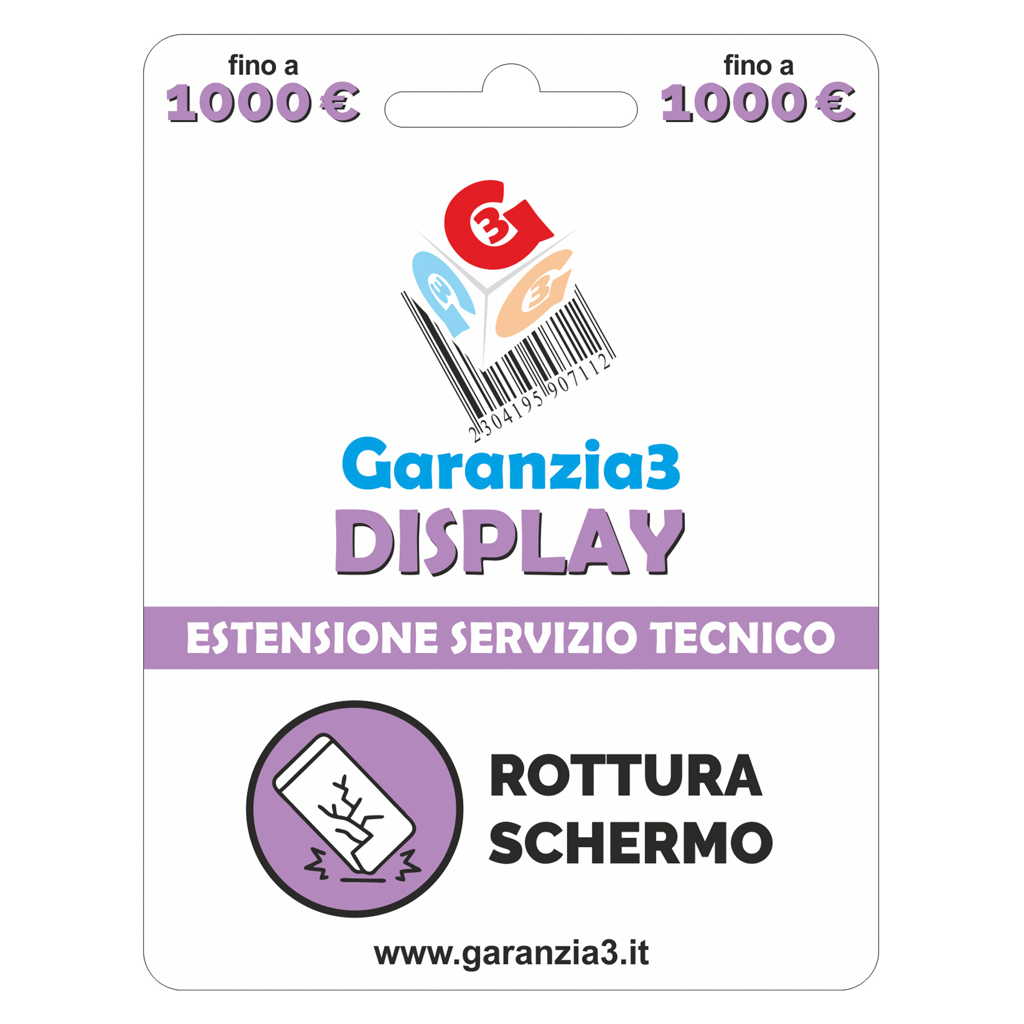 Garanzia3 DISPLAY è il servizio di assistenza tecnica finalizzato ad una singola riparazione dello schermo esclusivamente in caso di danno accidentale, per una durata di mesi 12 dalla data di attivazione del certificato scelto.