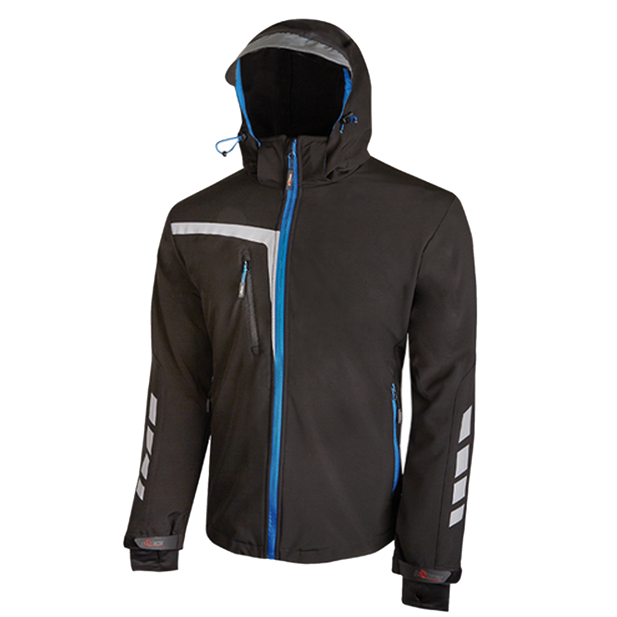 Giacca Soft Shell traspirante , tasca su petto con chiusura zip portacellulare e tecnologia Free Sound; due tasche frontali con chiusura zip; 2 ampie tasche interne; tessuto di rinforzo in polyoxford nella parte bassa posteriore; maniche preformate per vestibilità ottimale; cappuccio regolabile e staccabile con visiera in tessuto reflex; polsini regolabili con velcro e polsino antivento elasticizzato con buco per il pollice; fondo sagomato; coulisse antimpigliamento regolabile all’interno della tasca; Inserti reflex per garantire la massima visibilità. Soft Shell sfoderato da lavoro per Carpentieri, Imprese di pulizia, Installatori, Magazzinieri, Meccanici. Conformità alla norma CE, EN ISO 13688:2013, Regolamento UE 2016/425 CAT.I