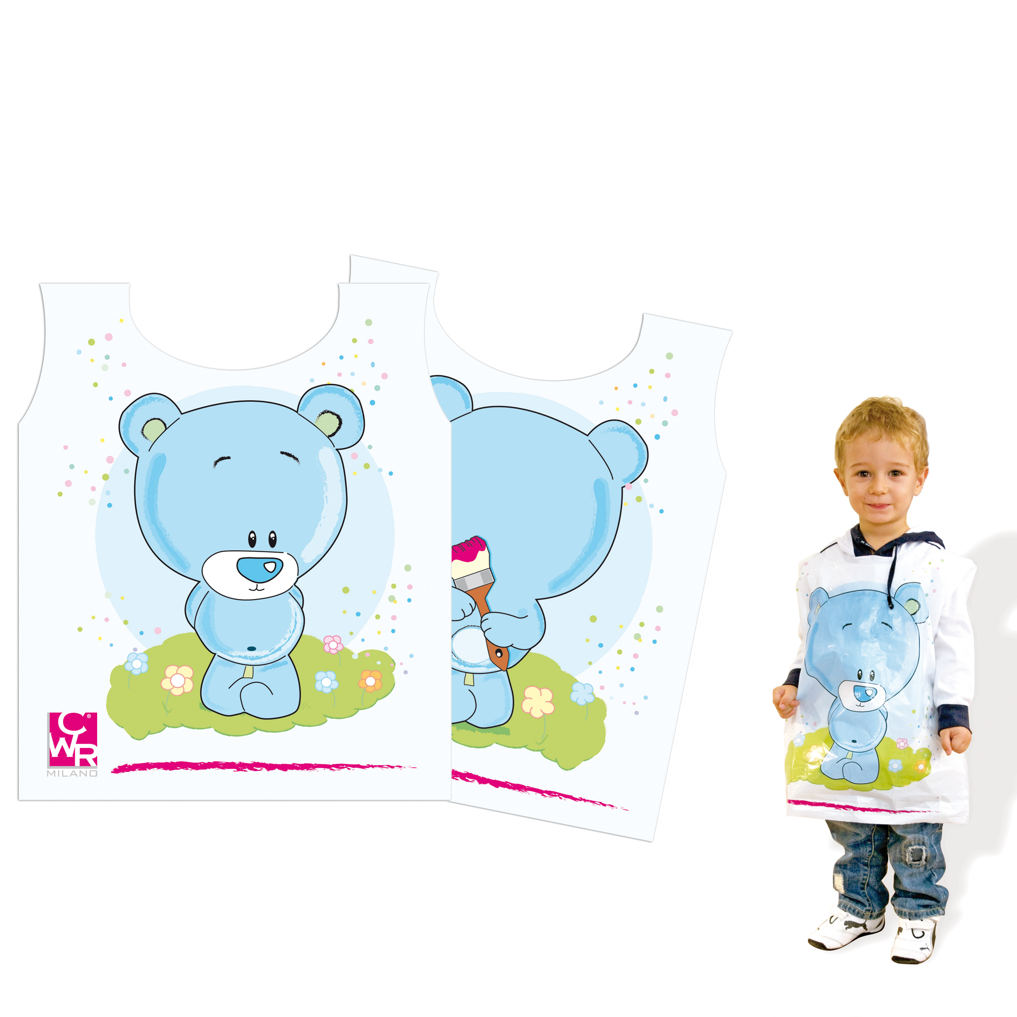 Detailled descriptionGREMBIULE IN PLASTICA USA E GETTA DA INDOSSARE SOPRA GLI ABITI. DIMENSIONI: 44X52 CM.Confezione 10pz.