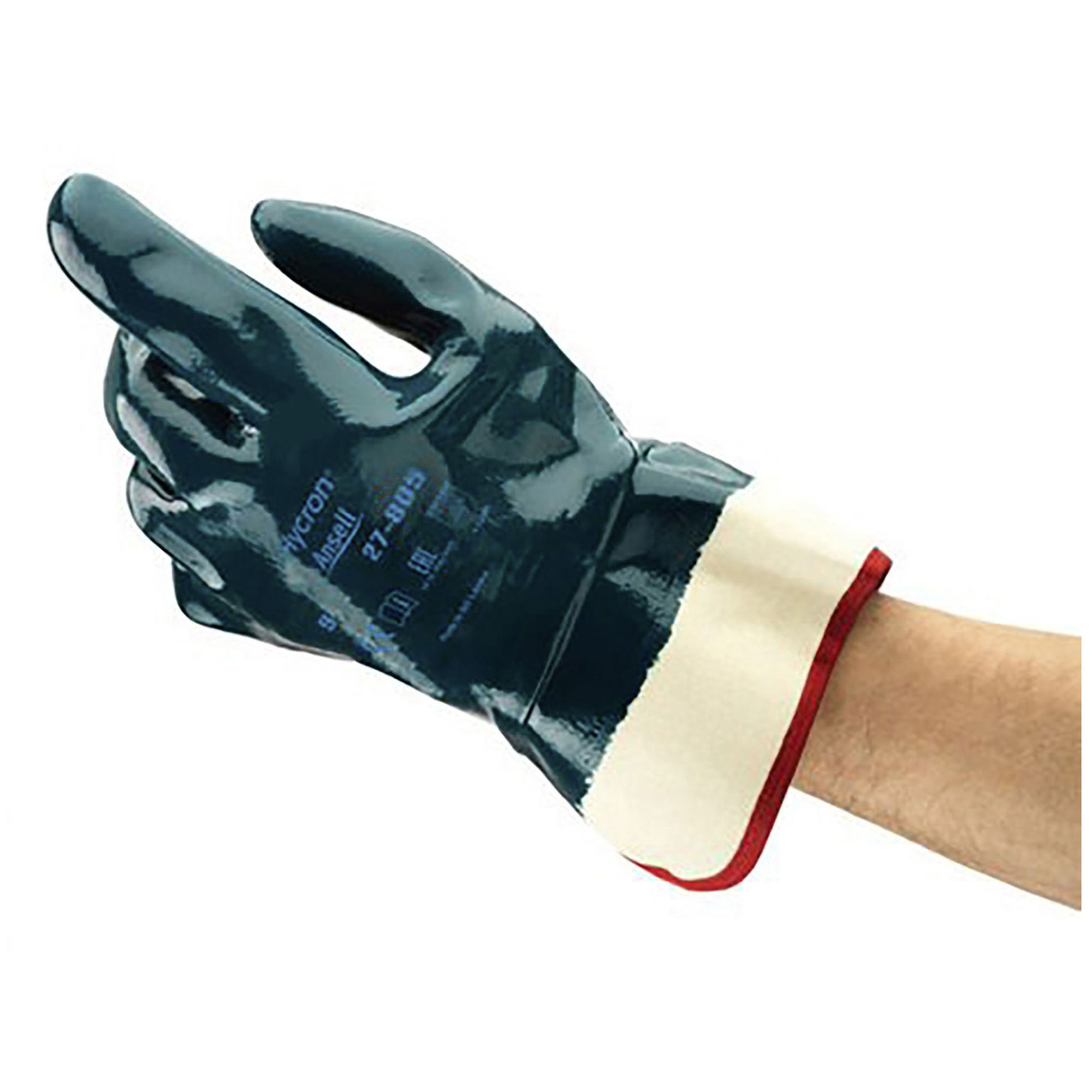 Un grande e robusto guanto per impieghi gravosi ed impegnativi: dura tre volte di più dei guanti di pelle rinforzati per applicazioni gravose. Più robusto e più flessibile del PVC. Ottima barriera al grasso e all'olio; non si degrada come la pelle o il cotone.