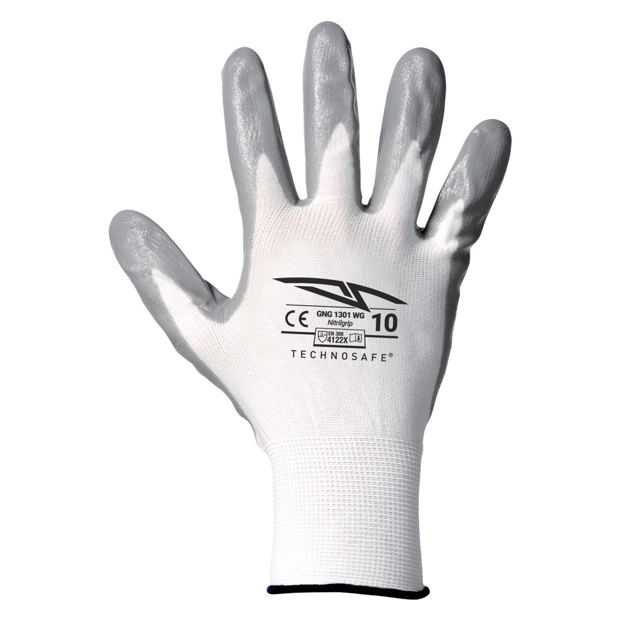 Guanto sintetico bianco spalmato in nitrile Top Quality grigio e polsino elasticizzato. I guanti della linea Nitrilgrip garantiscono una facile calzata e un eccellente comfort, grazie alla maglia senza cuciture. Offrono grande sicurezza e protezione anche in presenza di oli, grassi e sostanze scivolose. La spalmatura in nitrile, grazie alla buona memoria elastica, consente al guanto di rimanere flessibile ed offrire contemporaneamente un’ottima resistenza all’abrasione.