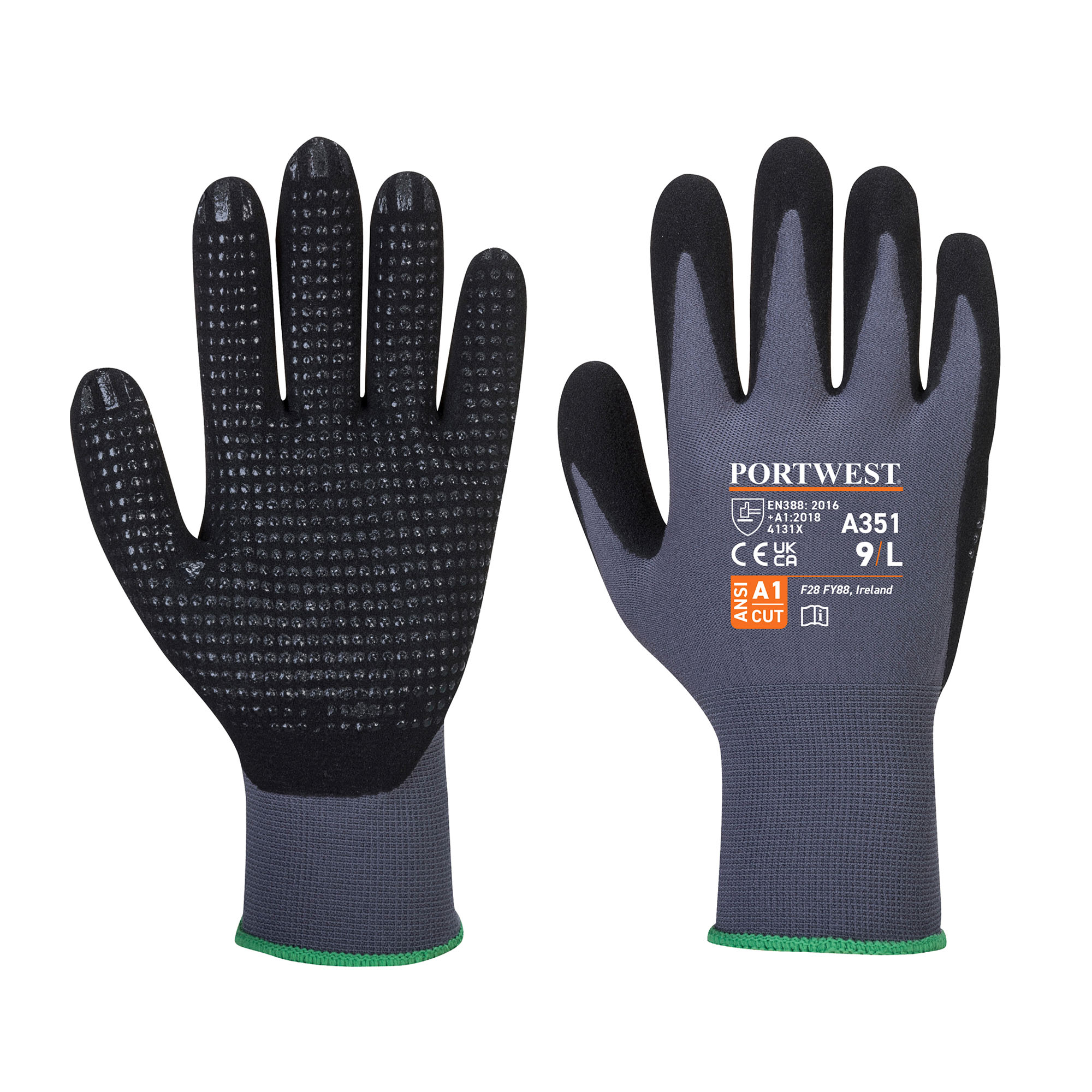Detailled descriptionPalmo puntinato per miglior grip e protezione del palmo.CaratteristicheRivestimento in schiuma di nitrile per un grip eccellente in condizioni di umido e seccoFodera interna traspirante senza cuciture ideale per la movimentazione di precisione in ambienti asciuttiMaglia calibro 15 per una maggiore destrezzaMaglia traspirante senza cuciturePalmo in nitrile puntinato per una presa miglioreLeggera e confortevoleCertificato CEBlister che aiuta la presentazione per le vendite al dettaglioANSI Livello al taglio A1Approvato OEKO-TEX®Settori consigliatiAutomotiveManipolazione di oggetti e assemblaggiLogistica e trasportiManutenzioniAssemblaggio o manipolazione meccanica nell'industria automobilisticaNormeEN ISO 21420 Destrezza 5EN388:2016 +A1:2018 - 4131XANSI/ISEA 105: 2016 Livello TAGLIO A1