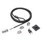The pack includes two adapters and cable trap to secure peripheral accessories. The Cable trap allows a wired mouse and wired keyboard to be secured safely. An anchor plate allows equipment without a Kensington Security Slot to also be secured. The thick 2.4 m carbon steel cable resists cutting attempts and deters opportunistic theft so you can rest assured that your belongings are safe in the hands of Kensington.