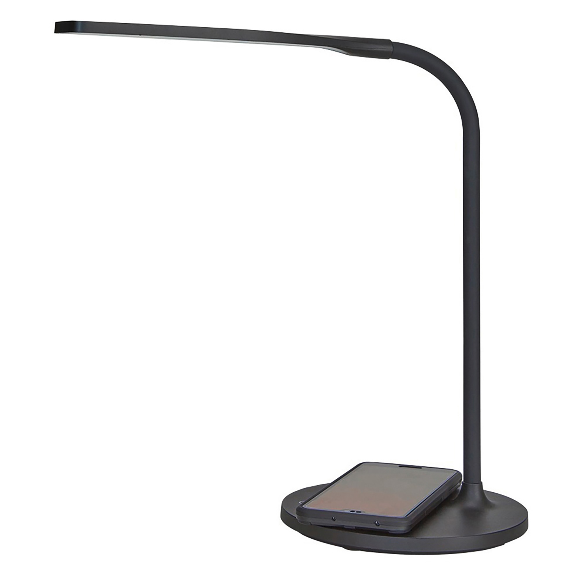 Lampada con caricatore integrato per telefoni senza fili (tecnologia Qi ad induzione magnetica). Testa a LED regolabile per regolare l'angolo e la direzione della luce (360°). 3 tonalità di colore: bianco, giallo e naturale. Zona di contatto per regolare l'intensità della luce (3 livelli). Pannello LED integrato per un consumo ecologico ed economico (25 000H).