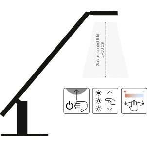 • Lampada da tavolo a LED con illuminazione biologicamente efficace e innovativo controllo tramite gesti • Supporta il ritmo quotidiano personale e l'orologio biologico interno con temperatura colore e intensità luminosa ottimali • Emulazione realistica della luce del giorno per una corretta produzione ormonale e un miglior benessere • Regolazione dell’intensità e del colore della luce tramite controllo gestuale tridimensionale intuitivo • Illuminazione omogenea della postazione di lavoro • Elevata fedeltà dei colori grazie ai binning con tolleranza ristretta • Dimmerazione continua dell'intensità luminosa • Temperatura colore della luce regolabile in 5 step da 2.700 K a 6.500 K • Testa rotonda ruotabile per una perfetta illuminazione per qualsiasi attività • LED a lunga durata, garantiti oltre 50.000 ore • Cavo universale USB-C incluso per l'alimentazione della lampada tramite laptop o batteria esterna • Base salvaspazio in acciaio • Facile da assemblare, senza necessità di attrezzi • Corpo in alluminio di alta qualità