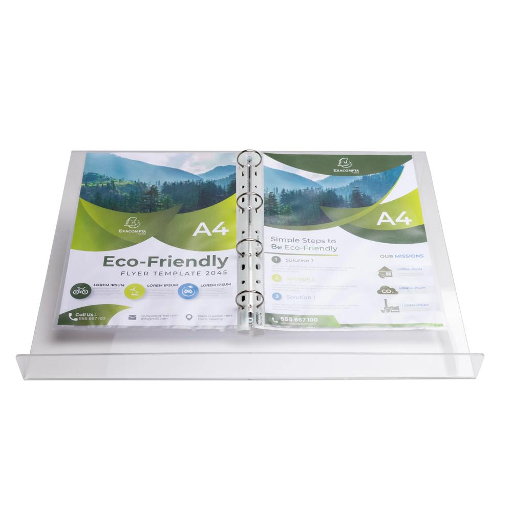 The Exacompta table lectern allows you to place or display your A4 or A3 documents With its removable binder mechanism, you can also slide in pockets and perforated sheets Made of high quality PMMA (acrylic), it offers very high transparency. Made in Europe, it is UV resistant and does not yellow 5 year warranty