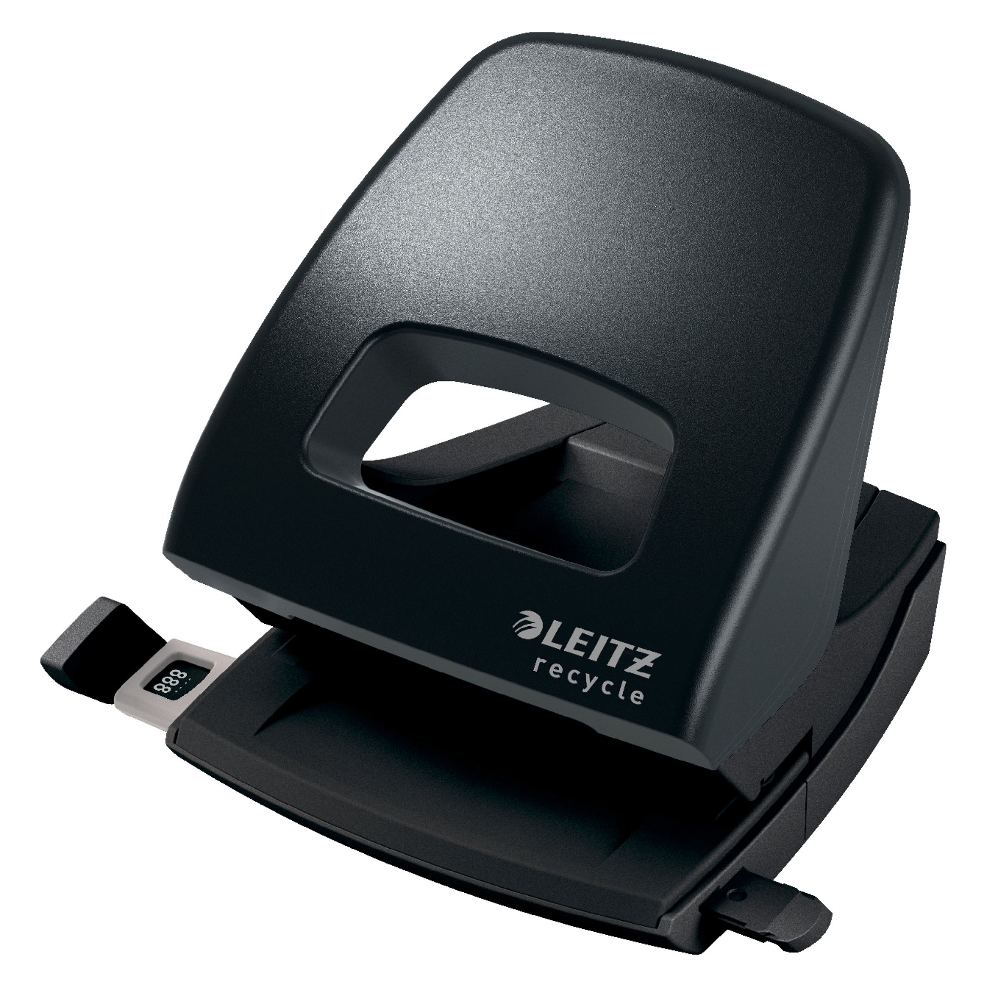 This Leitz NeXXt hole punch is 100% recycable as can be dismantled to seperate the different materials. It comes with an slide-in grip zone and sharp stamps to reduce punching effort. It's even GS safety tested.