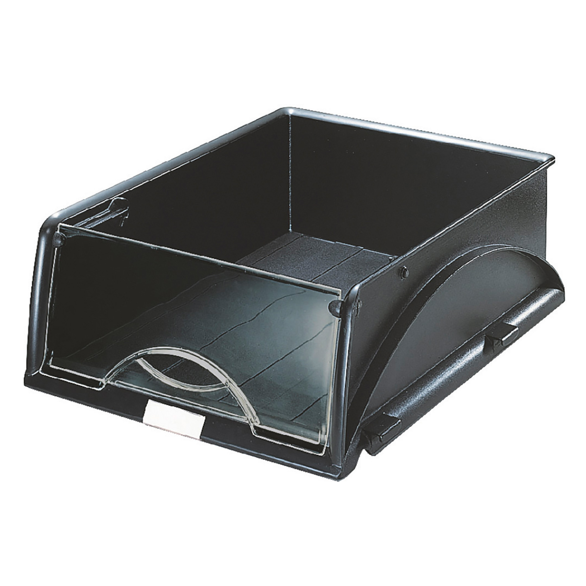 Leitz front load single letter tray Sorty 5231. Made of polystyrene. Stackable and also for lateral attachment. Includes a label and a front cover. For format: A4. Dimensions (W x D x H): 29.1 x 38 x 12.7 cm. Colour: black.