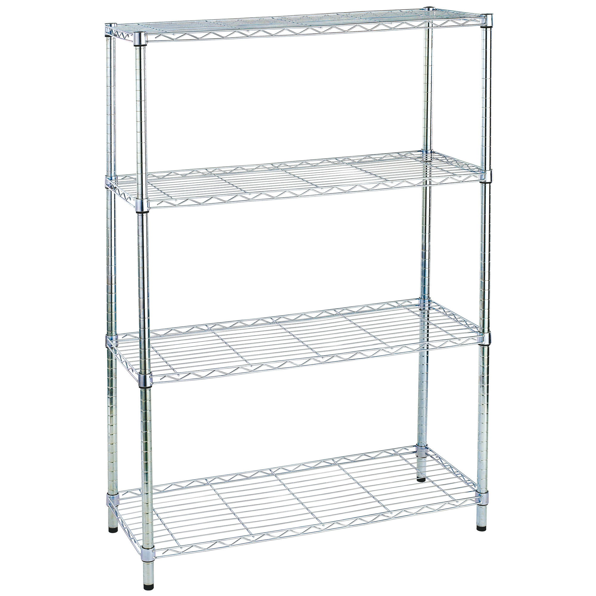 Detailled descriptionLibrerie in acciaio cromato con tubolari diametro 2,54 e piedini regolabili. 4 ripiani - 36x90cm h137cm. Portata max 50kg per ripiano.