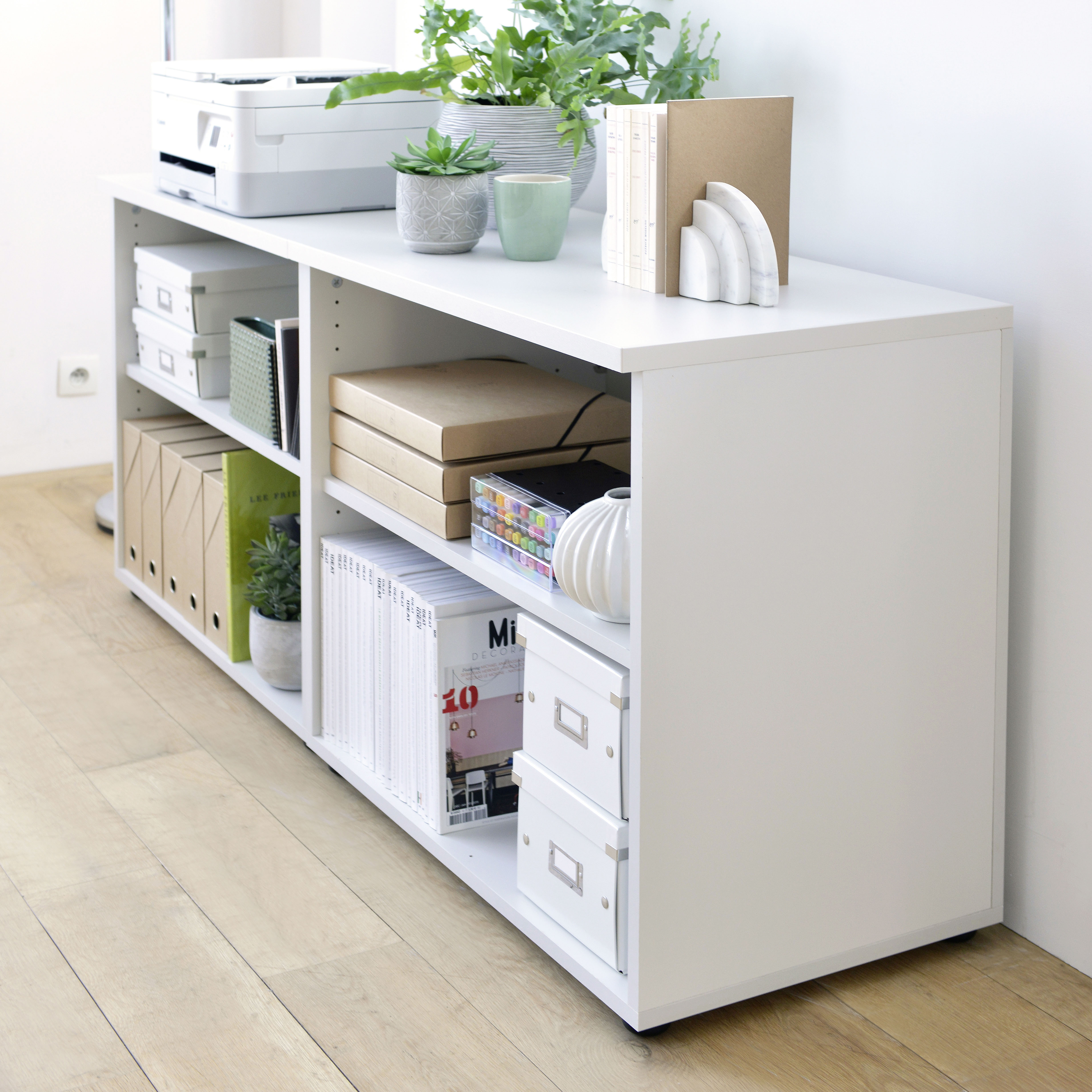 Ottimizzate lo stoccaggio di libri e altri oggetti con la libreria bassa Eden. Il suo ripiano regolabile in altezza offre un ampio spazio per riporre e archiviare. Questo modello è dotato di una pratica base per evitare che i piccoli oggetti cadano. Robusta e resistente, la libreria è realizzata in truciolato rivestito in melamina.