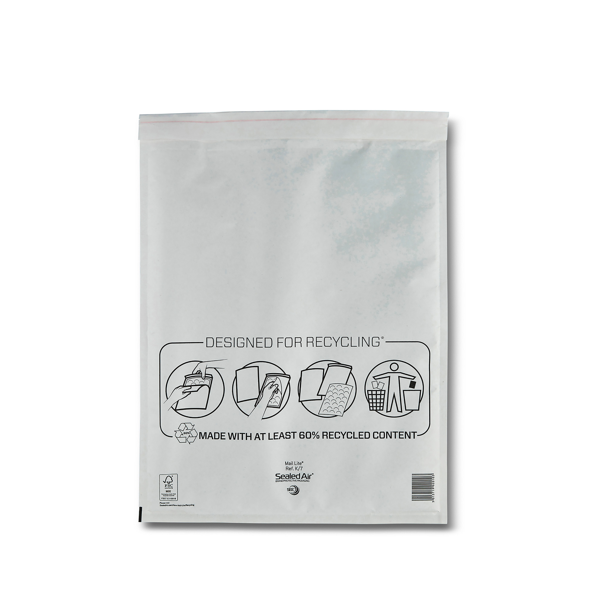 These K/7 Mail Lite white bags from Sealed Air offer lightweight protection for the contents of your mail. Featuring a quality Air Cap barrier sealed bubble for long lasting protection and covered with glazed white paper; ideal for high volume mailings and every day postal needs.