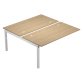 Lo spazio fra i due piani di lavoro contrapposti è di 5 cm. Desktop sp. 25 mm con 2 anelli passacavi (bordo in ABS sp. 2 mm). L’esclusivo sistema di assemblaggio permette di allestire postazioni multiple affiancate le une alle altre utilizzando una sola gamba intermedia a profondità ridotta in corrispondenza del punto di giunzione fra i bench. Questa soluzione tecnica offre la possibilità di ridurre gli ingombri a vantaggio dell’utilizzabilità e del design e consente anche un risparmio economico.