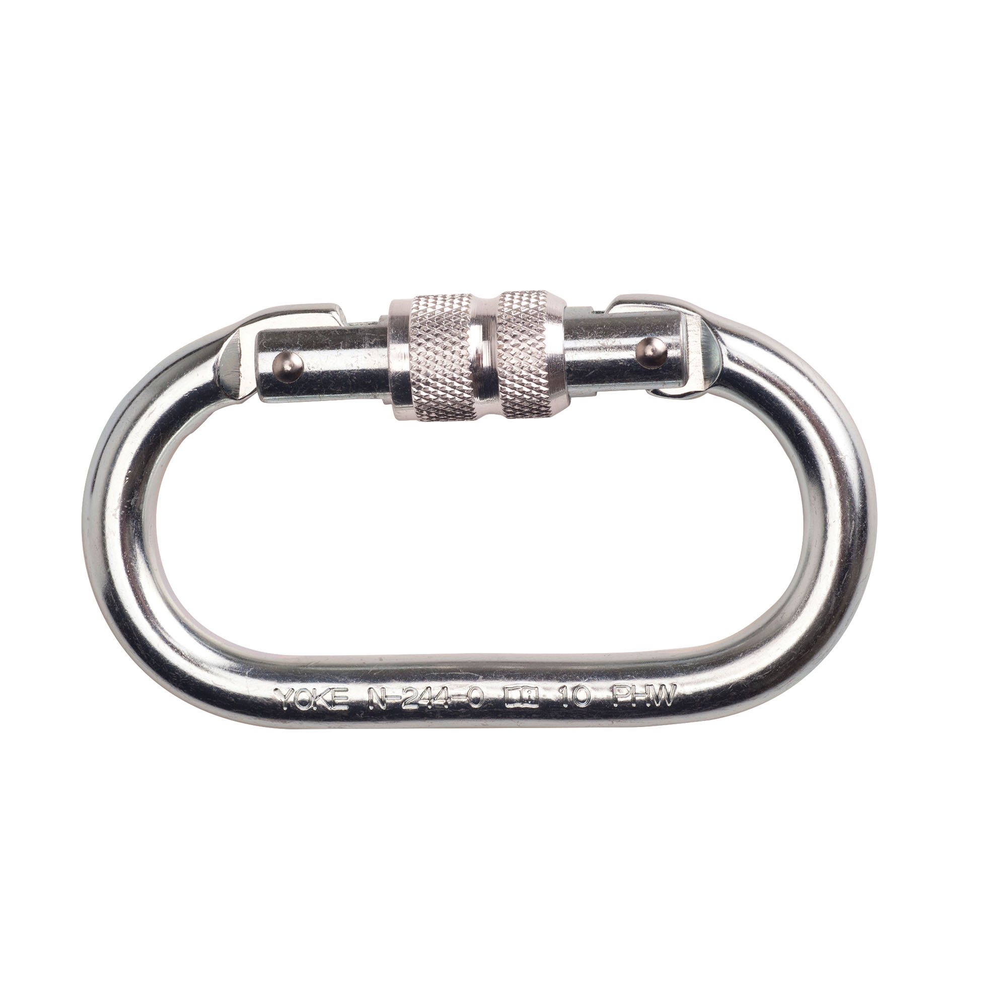 Detailled descriptionMoschettone ovale in acciaio con chiusura a vite. CaratteristicheLunghezza 106 mmApertura moschettone da 19 mmCarico nominale massimo 100 kgCarico di rottura: 25kNMateriali: lega di acciaio, trattata termicamentePeriodo di validità di 10 anni dalla data di produzione indicata nell'etichetta del prodottoCertificato CEMarcato UKCANormeEN 362