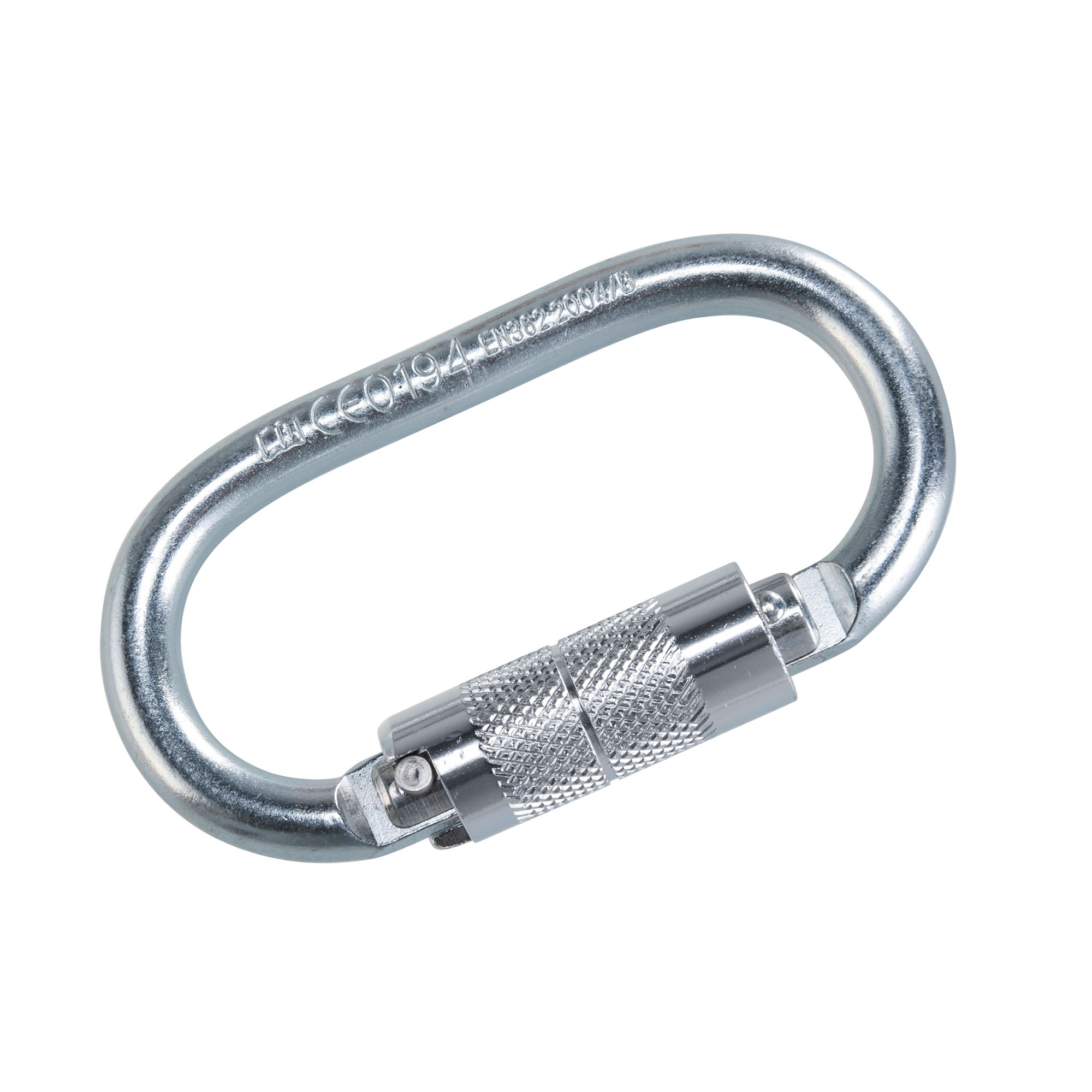 Questo moschettone Twist Lock presenta un'apertura da 20 mm per fissare un dispositivo di collegamento come un cordino anticaduta a un punto di ancoraggio. Carico di rottura: 20kN.