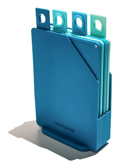 Detailled descriptionMuitomas CUTTINGBOARDBL. Shape: Rectangular, Material: Silicone, Product colour: Blue. Width: 155 mm, Depth: 70 mm, Height: 250 mm. Quantity per pack: 4 pc(s)