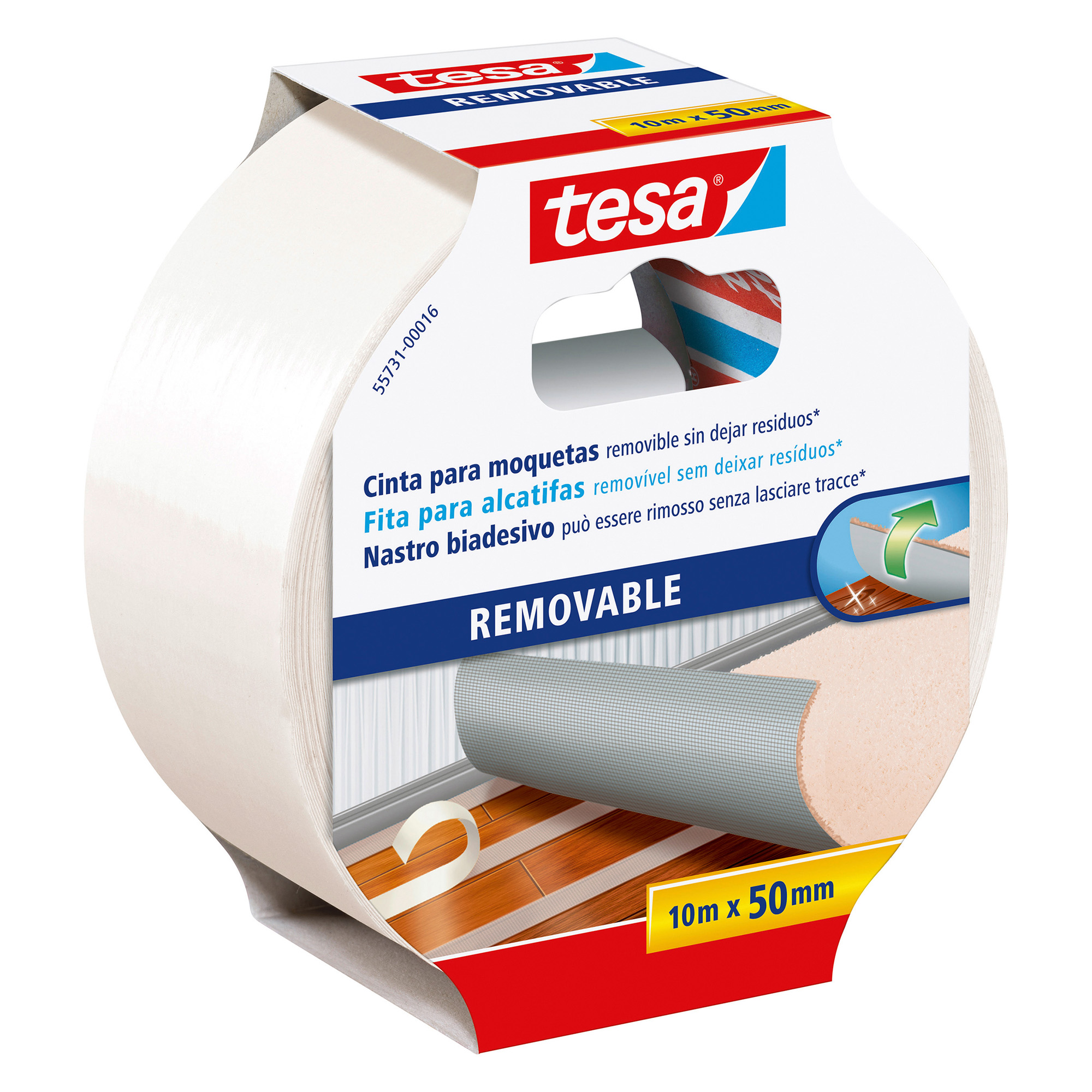Questo nastro è rinforzato in tessuto per offrire un fissaggio extra forte di qualsiasi moquette o rivestimento in PVC. Può essere strappato a mano per una facile applicazione senza bisogno di strumenti.