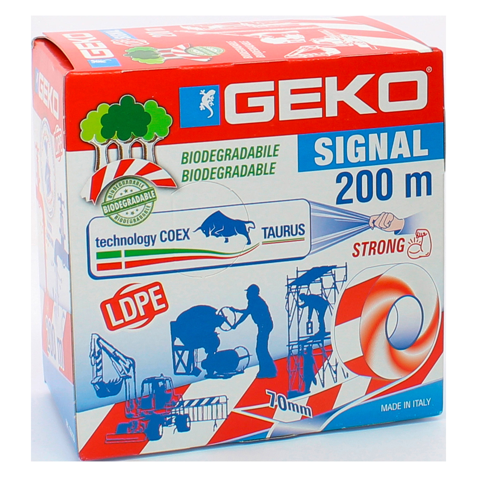 Detailled descriptionNastro segnaletico di alto spessore, per la delimitazione temporanea di aree a basso rischio e cantieri.CaratteristicheProdotto attento all’ambiente e biodegradabileMassimo rispetto dell’ambiente gli inchiostri utilizzati per la stampa sono a base acqua.Dimensioni 200 metri x 70 mmColore rosso e biancoMateriale LDPEMade in Italy