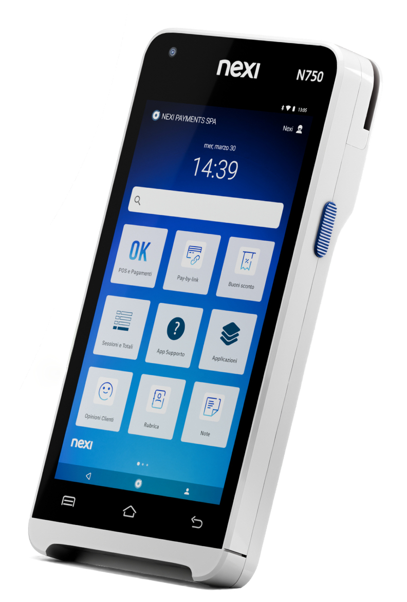 Detailled descriptionNexi NEIN750. Interface: Wi-Fi + 4G. Payment methods supported: Credit card, Debit card. Product colour: Black, Grey