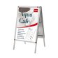 Nobo poster stand. Frame made of aluminium. Extra stable due to the steel panel. Can be used as pavement sign. Special folding mechanism for easy attachment and replacement. For in- and outdoor use, weather- and water-resistant. Anti-reflective film and 32 mm wide frame. Format: A2.