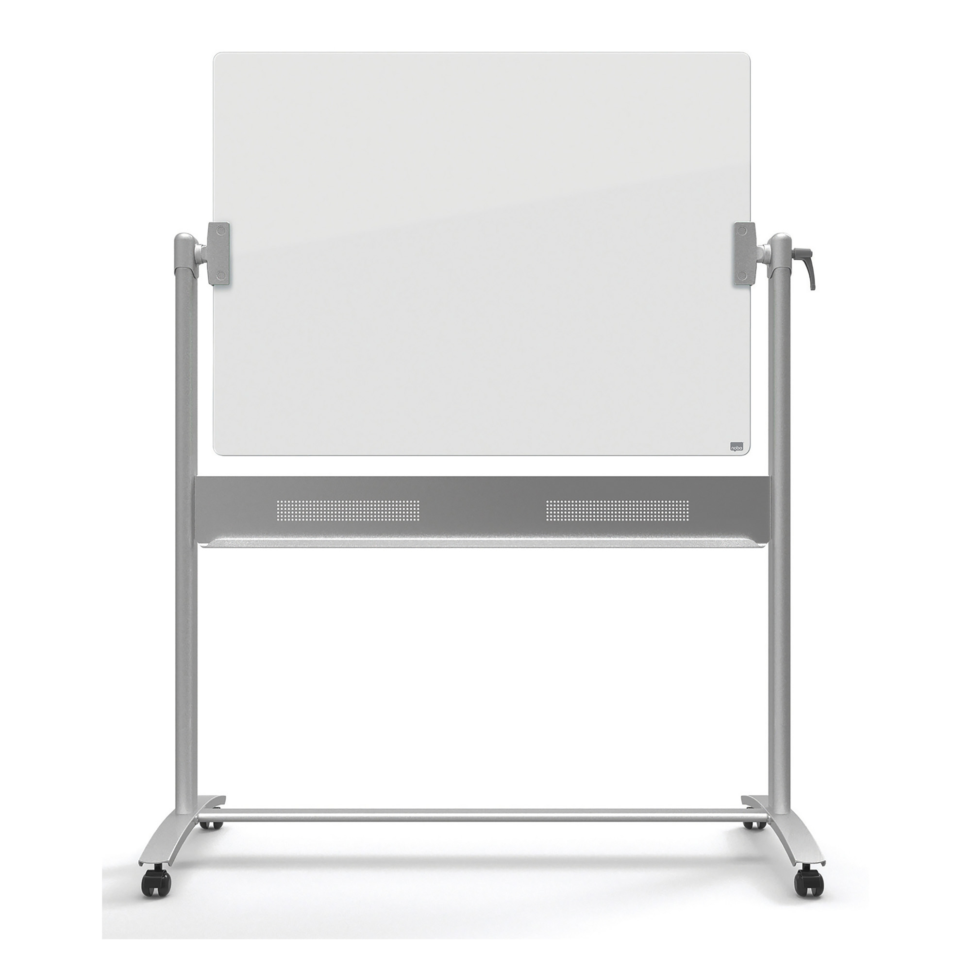 Nobo's frameless format glass mobile whiteboard has a spacious pen tray sitting below the board so that it doesn't encroach on the board's surface. Fitted with castors to offer easy movement between meeting rooms and break out areas. This glassboard measures 900 x 1200 mm (h x w).
