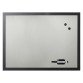 Detailled descriptionDoppia superficie per un doppio uso, lavagna magnetica a secco da un lato e bacheca in tessuto dall'altro. Superficie magnetica cancellabile a secco con finitura argento. Superficie in tessuto grigio scuro.