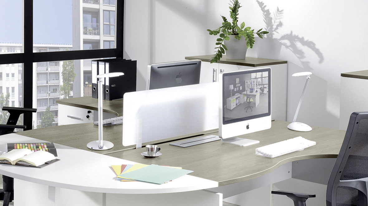 Il pannello può essere installato sotto la scrivania come gonna o sopra la scrivania come pannello divisorio.