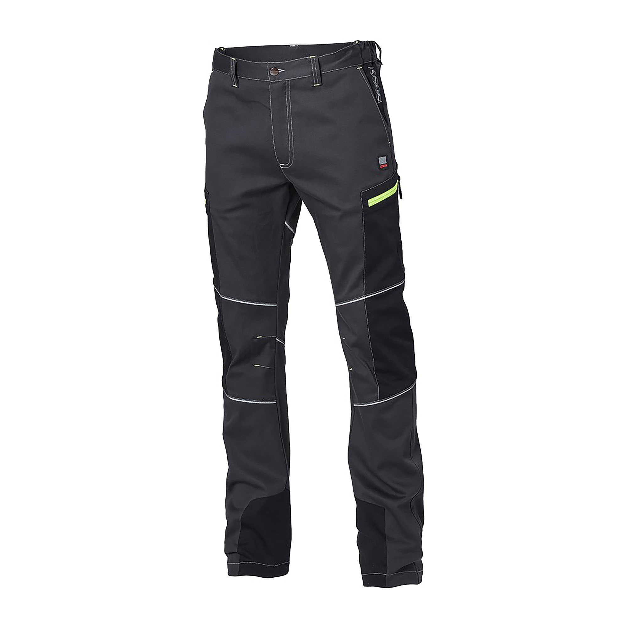 Detailled descriptionPantaloni stretch Bergen, colore grigio, 98% cotone 2% elastan, 240 g/m.CaratteristicheAbbottonatura con zip e bottoneElastico sui fianchiPassanti in vita e passante dietro a contrastoTasche davantiTasche laterali chiuse con zip rovesciata a contrastoTasca dietro chiusa con pattina e velcroApertura nella tasca laterale sinistra dietro per passaggio portametroPinces su ginocchia e dietroInserti in tessuto a contrasto su interno tasche davanti, inserti laterali, interno fondo gamba e pattina tasca dietroPorta martello sul dietro destroPiping reflex traforato su tagli obliqui davanti e dietroTravette e impunture in contrastoTransfer termosaldato icone funzionalità su interno tasca davanti sinistroTiretti con grip per zip