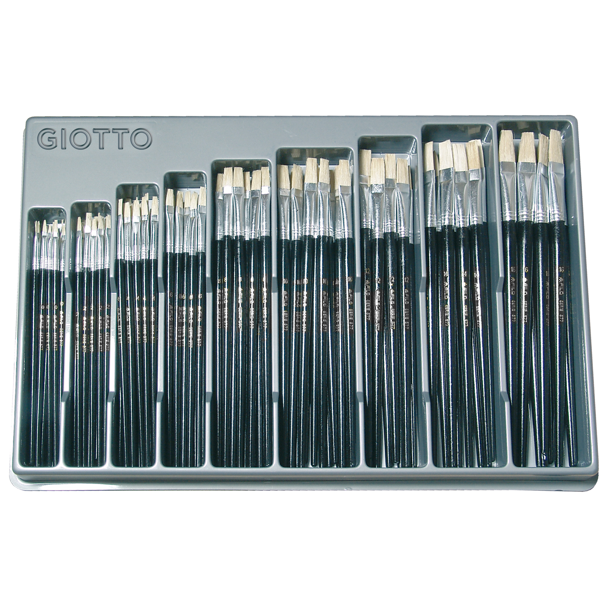 Detailled descriptionPennello per olio, manico legno naturale verniciato nero, punta piatta in setola. Vetrinetta contenente: 20 pz del numero: 0,2,4. 14 pz del numero: 6,8,10. 8 pz del numero: 12,14,16.