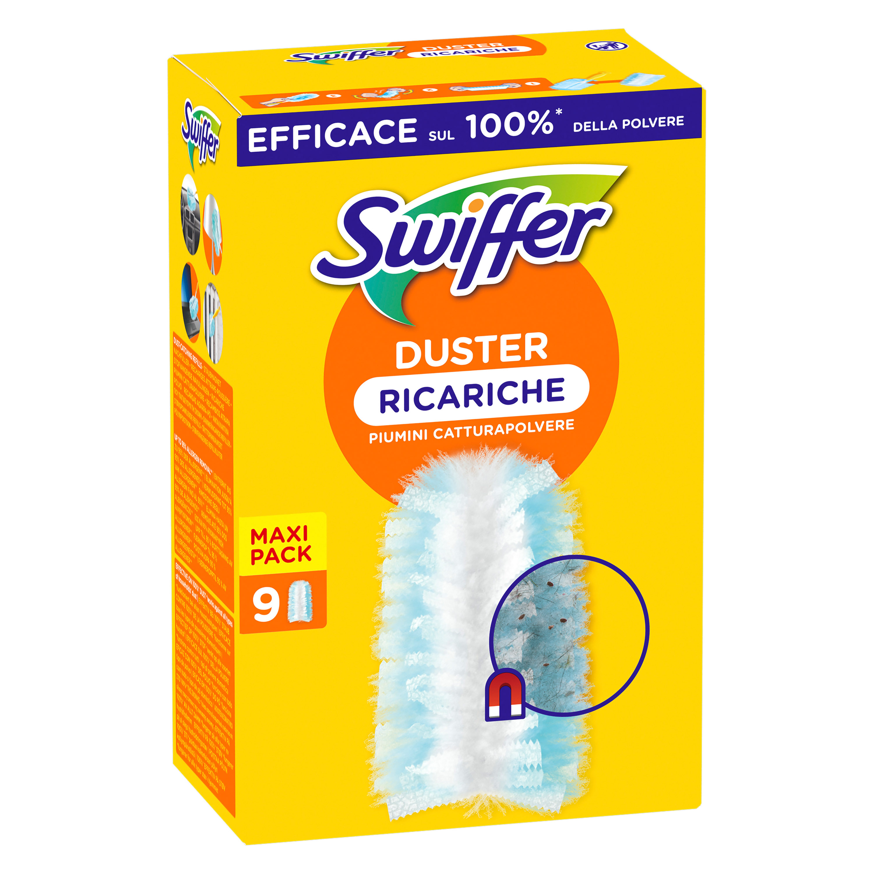 Detailled descriptionRicariche piumini catura polvere Swiffer Duster.Efficace sul 100% della polvere.In confezione da 9 piumini 3X.