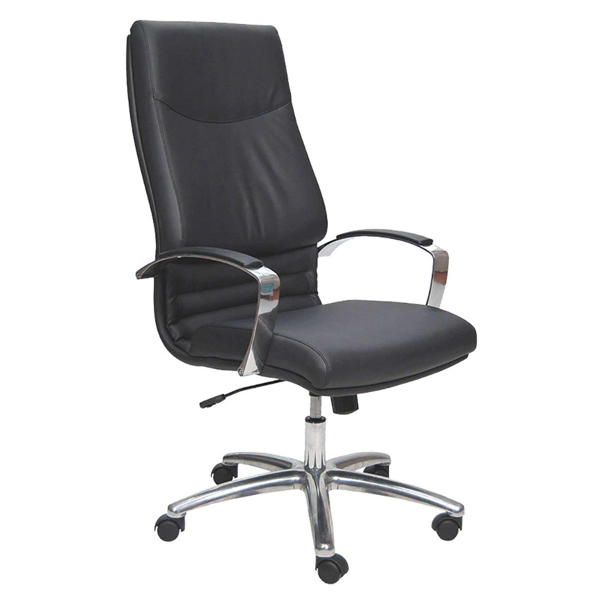Poltrona Direzionale. Schienale fisso. Elevazione a gas. Meccanismo oscillante con blocco. Altezza Totale: 114-123 cm; Altezza Seduta: 47-56 cm; Altezza Schienale: 67 cm; Profondità seduta: 48 cm; Larghezza Seduta: 50 cm; Larghezza Schienale: 50 cm; Braccioli: inclusi
