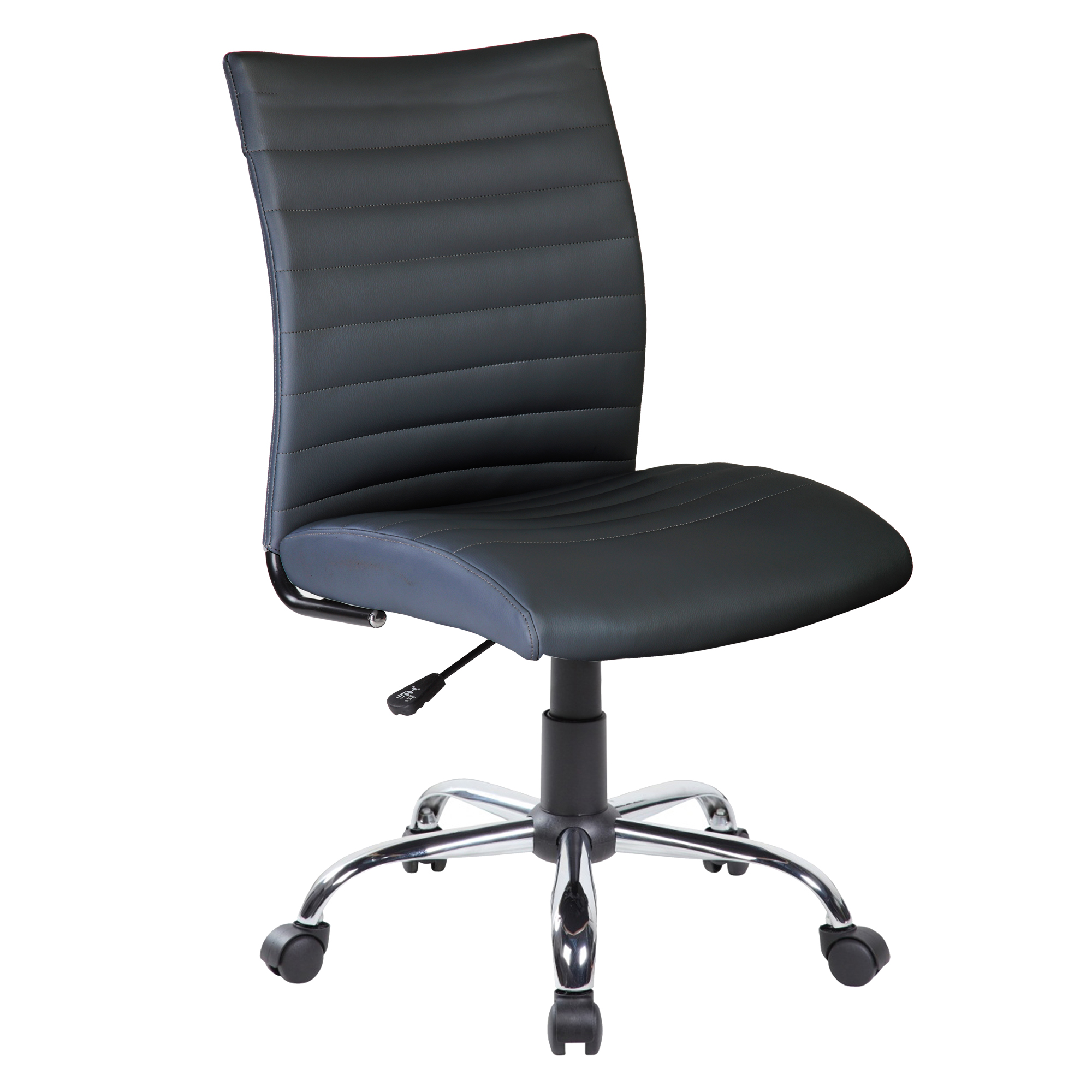 Detailled descriptionPoltrona a schienale basso rivestita in PU. Base in acciaio con ruote in nylon. Meccanismo oscillante bloccabile. Senza braccioli. Larghezza fuori tutto cm 46; Larghezza seduta cm 46; Profondità cm 53; Altezza cm 89/99; H. seduta cm 45-55.