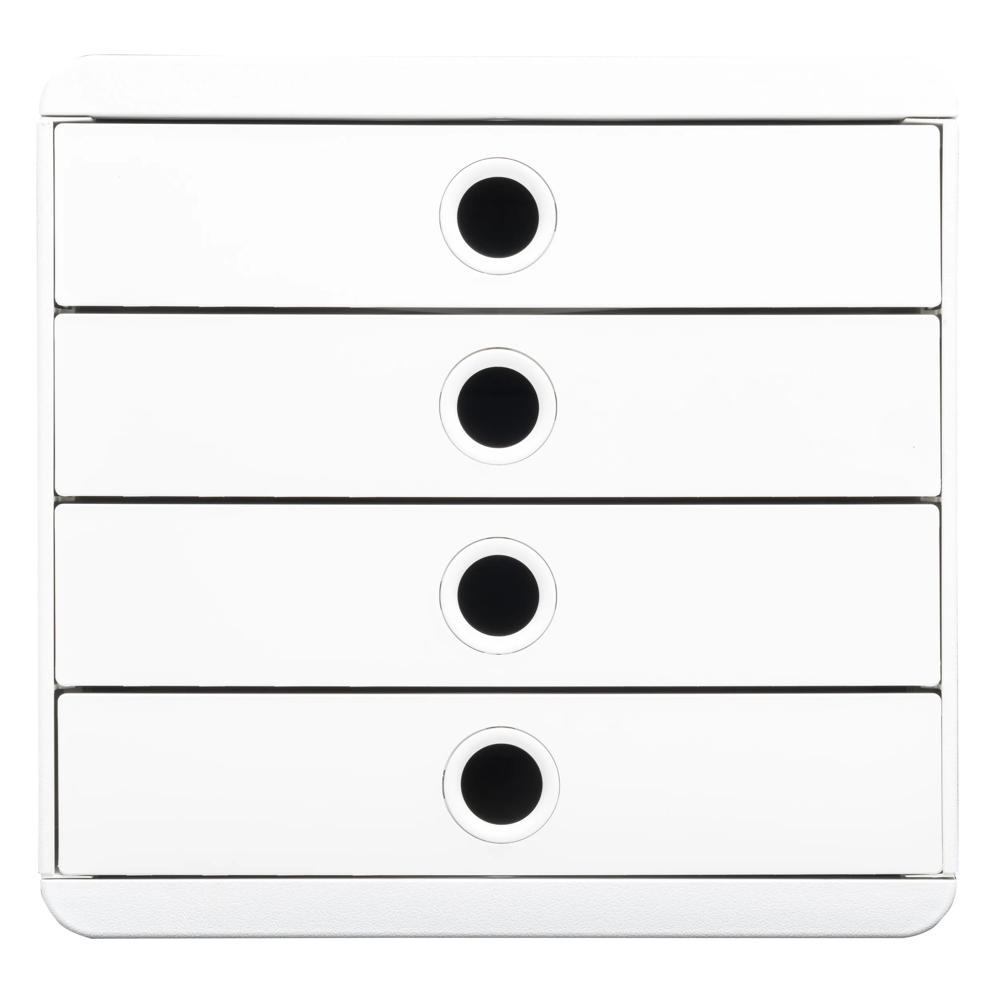 The Pop Box filing unit features 4 drawers for filing A4 and A4+ format documents, 24x32cm elasticated pockets or large format envelopes. This product has a simple and very ergonomic design and is suitable for the workplace, home office or school.