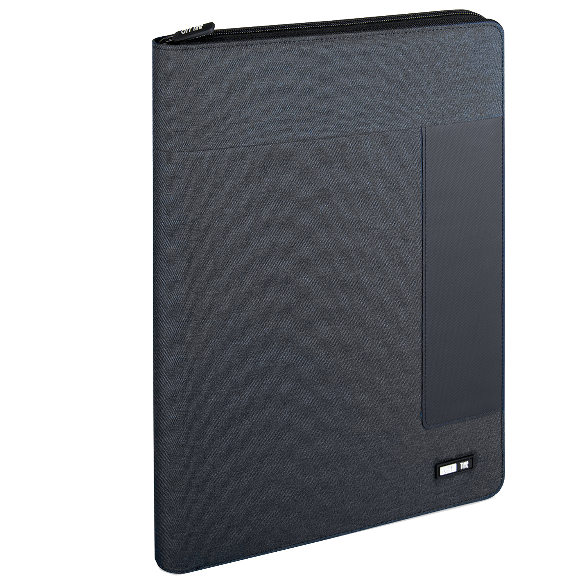 Detailled descriptionPortablocco in tessuto bicolore. Chiusura con cerniera. Tasca interna con vari scomparti. Completo di blocco. Dimensioni: 26x34cm