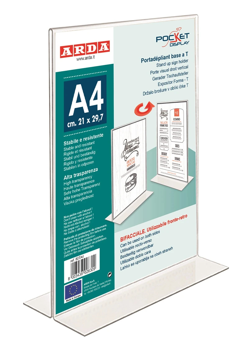 Detailled descriptionARDA 80TA4. Product colour: Transparent, Format: A4, Suitable for: Universal. Width: 210 mm, Height: 297 mm