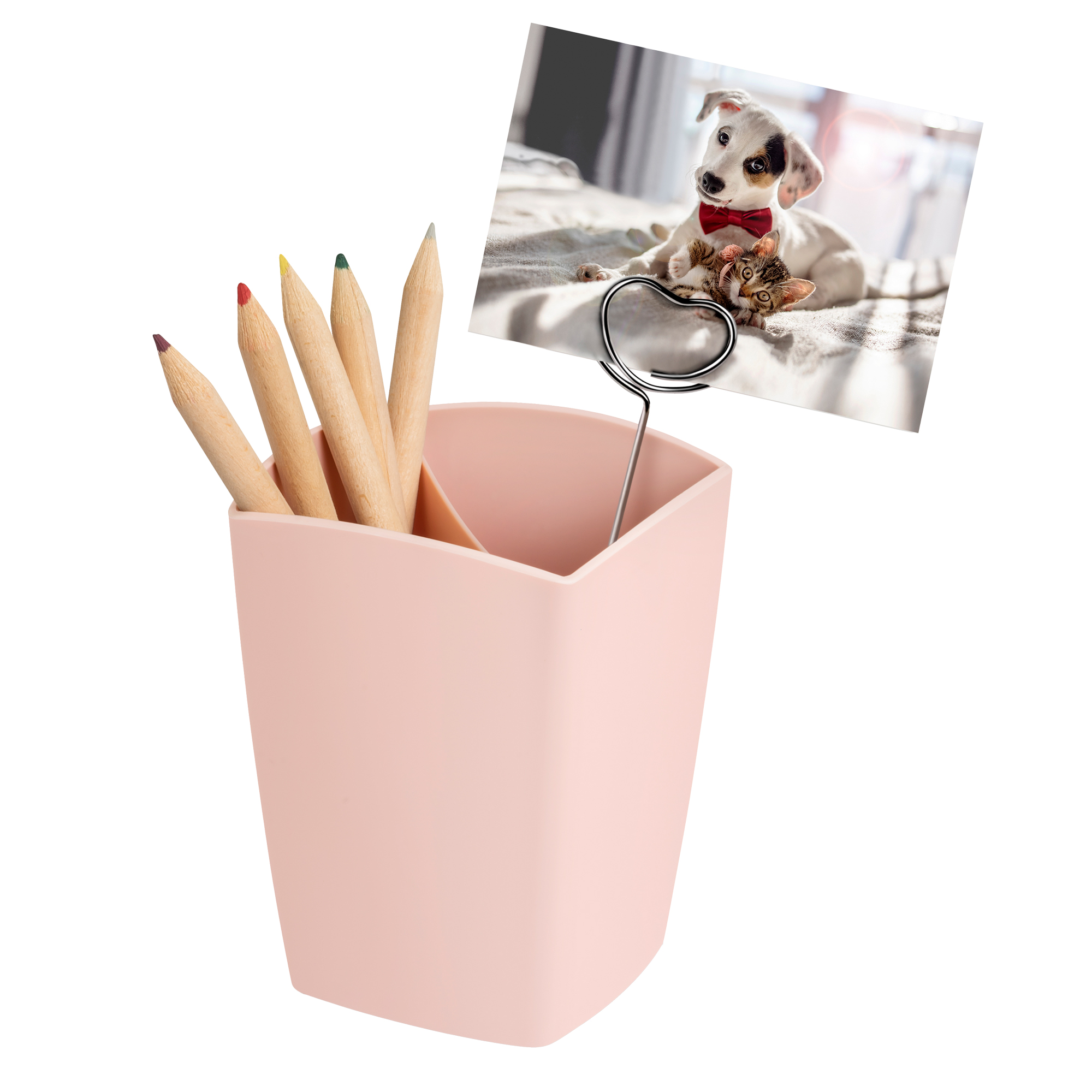 Portapenne dal design contemporaneo. Adatto per l'ufficio e per la casa. I suoi due scomparti permettono di separare gli oggetti mantenendoli ben disposti verticalmente. Eccellente stabilità. Capacità: 32 penne. Dimensioni: 74 x 74 H 95 mm. Realizzato al 100% in plastica PS di alta qualità e completamente riciclabile.