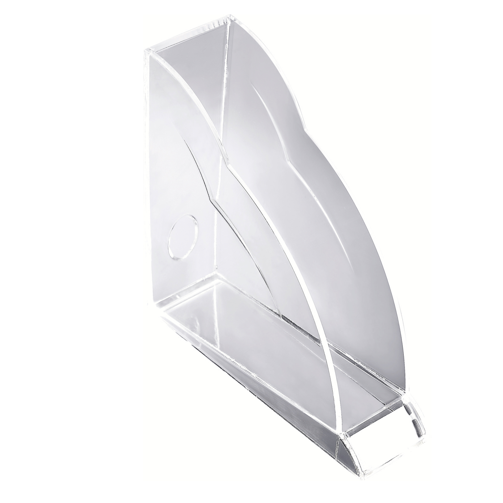 Ideal for storing files, folders, brochures and magazines, the Nimbus Magazine Rack comes with a high quality acrylic finish. It has a handy front index tab and a finger retrieval device at the back for easy access to files. Size is 77x250x255mm (W x D x H).