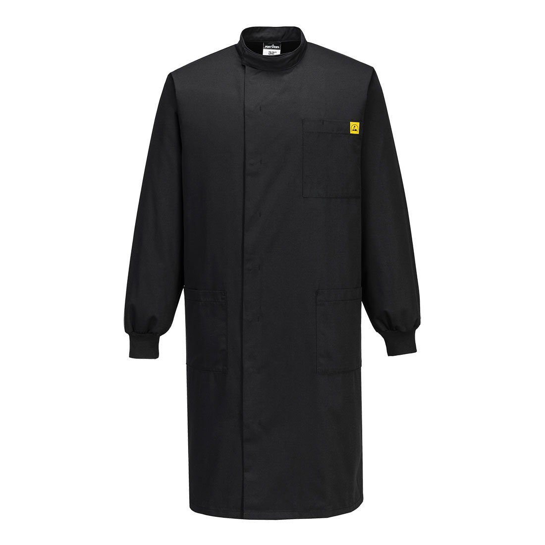 Il camice antistatico ESD Howie presenta diverse caratteristiche di design intelligenti. Polsini in maglia offrono protezione. Due tasche inferiori aggiuntive forniscono un facile storage ed una tasca sul petto sinistro permette un facile accesso. L'indumento è protetto con una finitura Texpel repellente all'acqua ed allo sporco.
