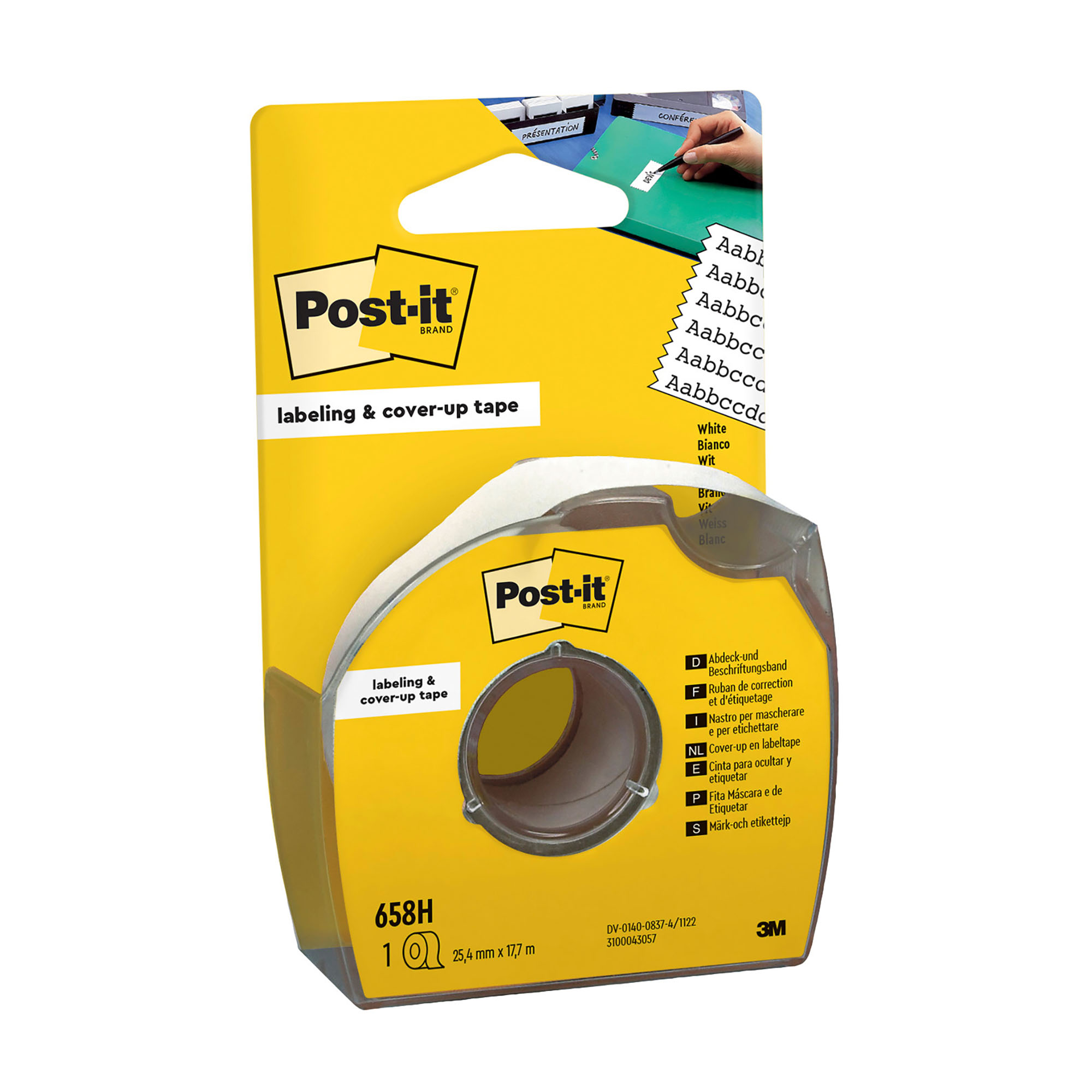 Post-It correction tape 658H. Does not ghost when photocopied. The tape is easily removable, without damaging the original. Also ideal for marking and labelling. Tape dimensions (W x L): 25 mm x 17.7 m.