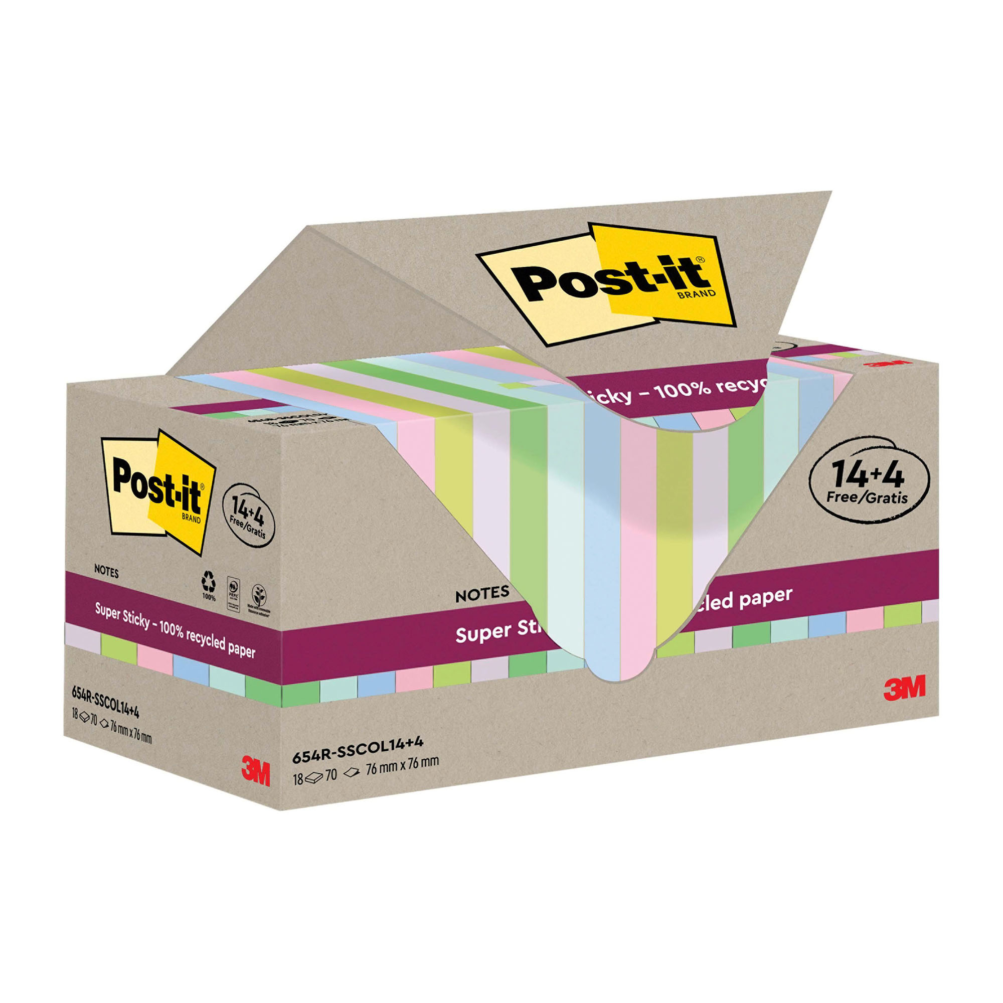 Post it Super Sticky Assortiti in carta riciclata 76 x 76 mm Confezione convenienza 14+4 unità da 70 fogli