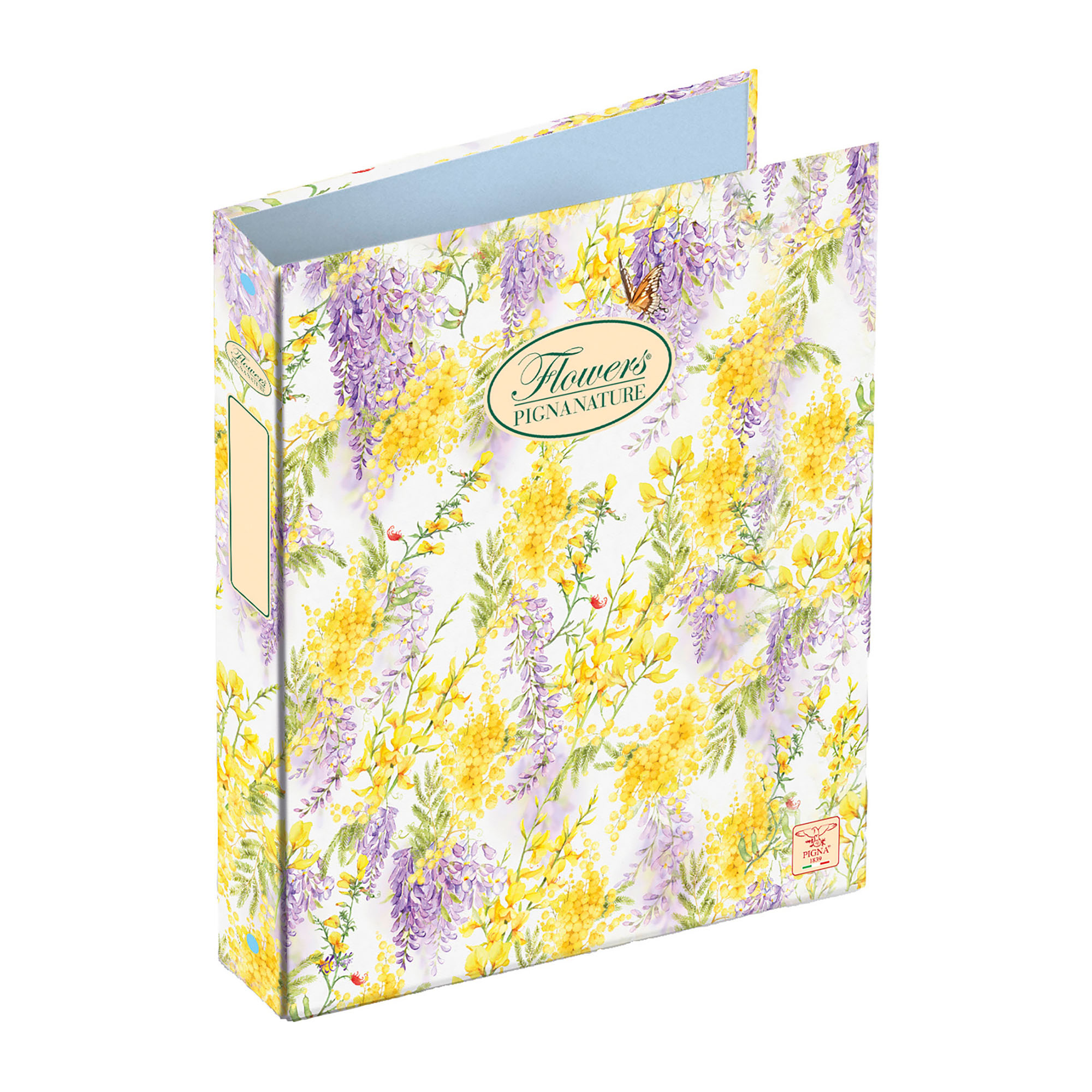 • Realizzati in robusto cartone rivestito • Raccoglitori 4 anelli diametro 30 mm, dorso 4 cm, Formato 27×32 cm per utile A4 • Venduto a multiplo di 5 pezzi con soggetti floreali assortiti • Coordinabili con le cartelline a tre lembi con elastico tondo verticale codice 794-054.