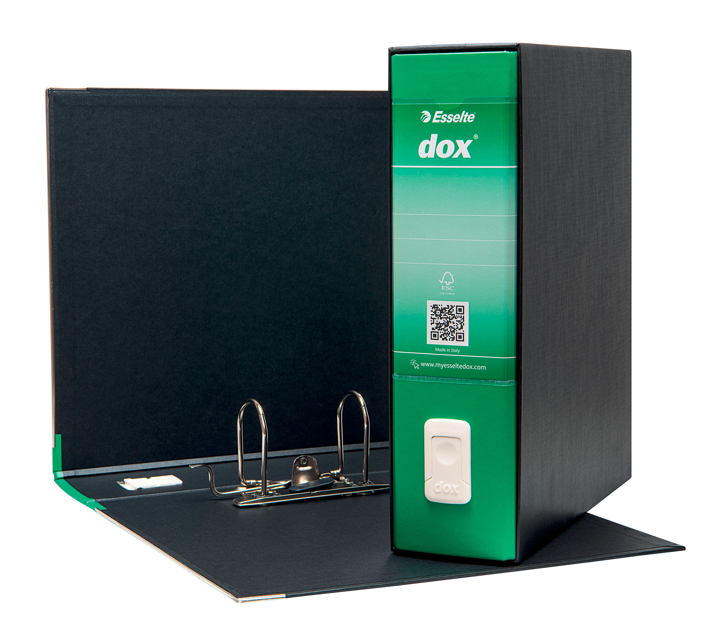Dorso in materiale plastico inalterabile da 8 cm, dotato di portaetichetta con etichetta estraibile scrivibile su entrambi i lati ed anello per facilitare l'estrazione del registratore dalla custodia.