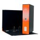 Il registratore a leva Dox 2 è rivestito con carta goffrata antimpronta e rifinito con paralati metallici alla base della plancia.