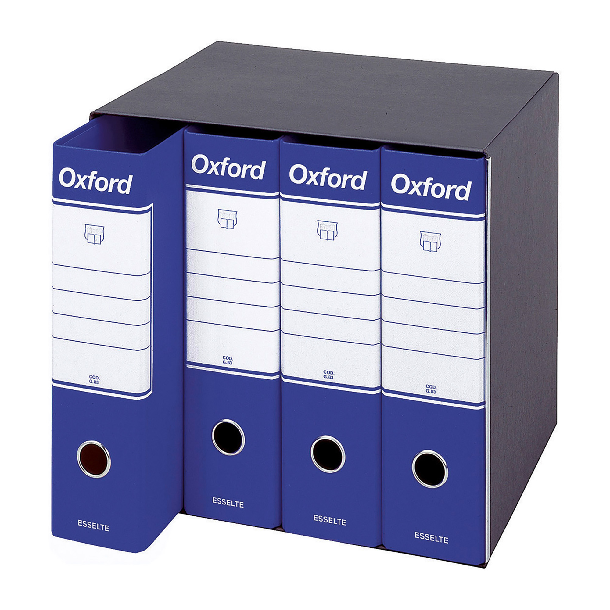 Sul dorso è presente un anello di estrazione e un'etichetta scrivibile per la classificazione e l'individuazione facilitata dei documenti.