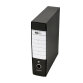 Registratore STARLINE modello StarBox, con struttura in cartone rivestita in carta goffrata stampata e risguardo bianco. Dotato di meccanismo a leva in acciaio nichelato con pressino. Custodia in fibrone nero rivestita in carta usomano. Anello di estrazione in metallo.