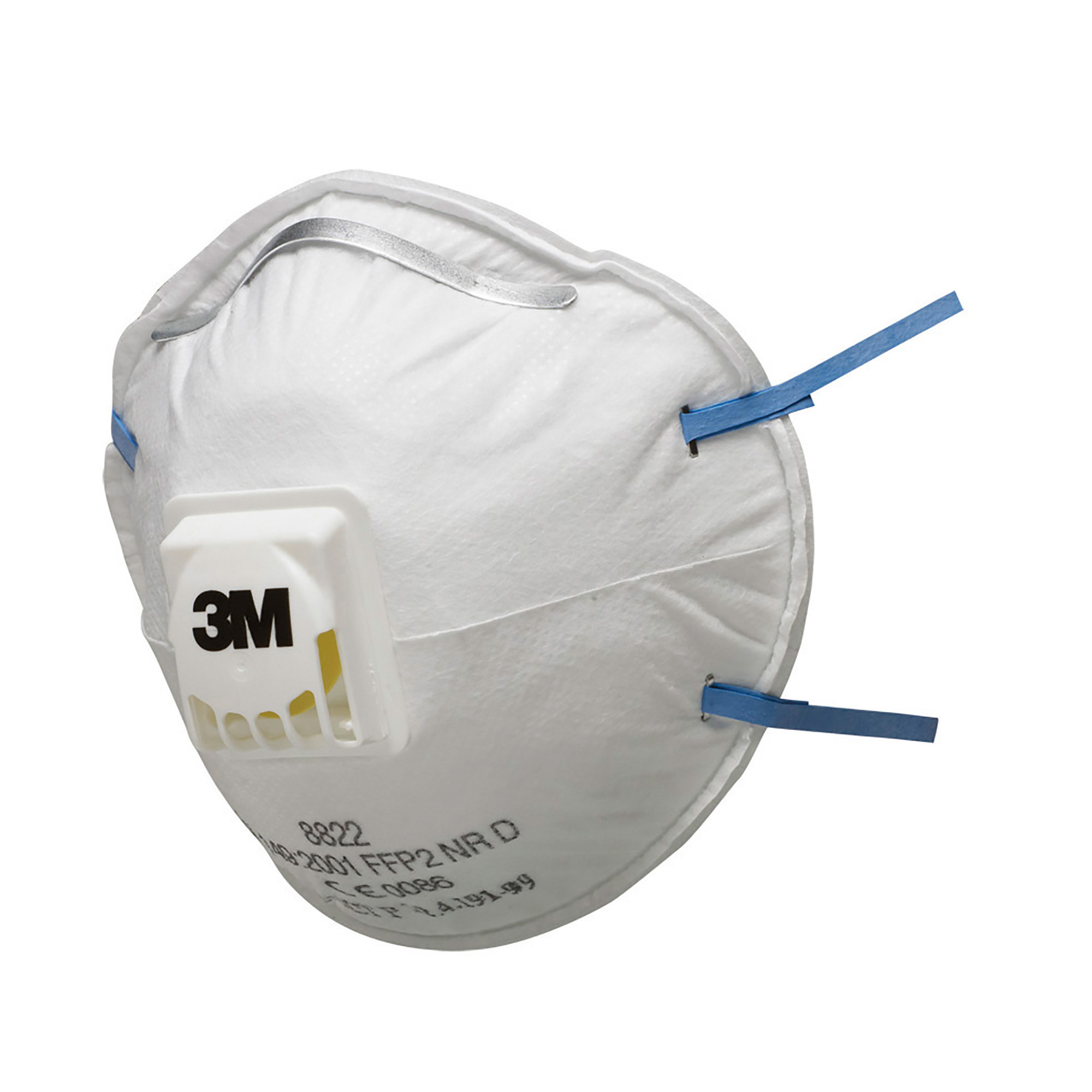 The 3M Disposable Respirator 8822 provides lightweight comfort and effective respiratory protection against dust and mists. The convex shape, twin strap design, nose foam and nose clip ensure comfortable wear over a range of face sizes.